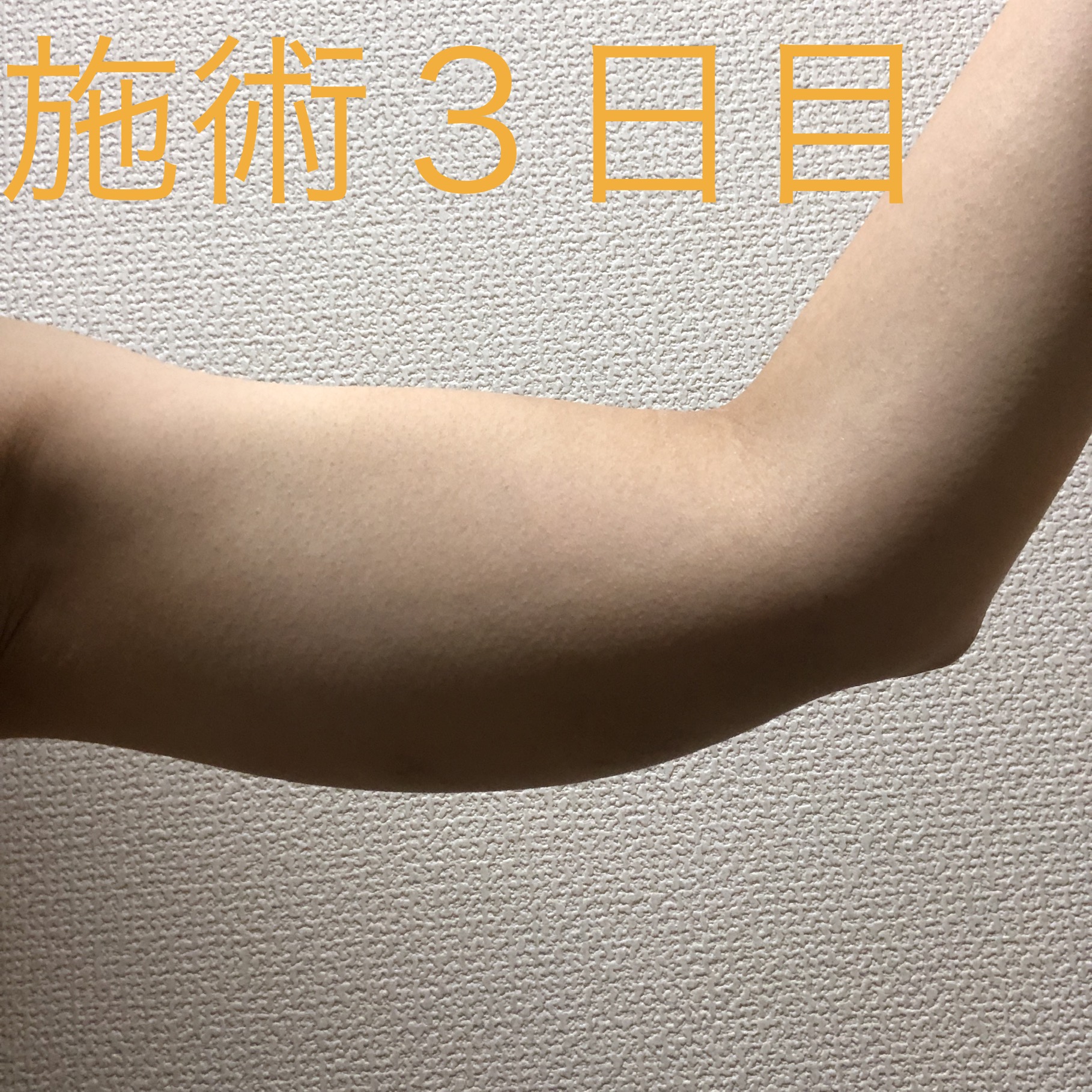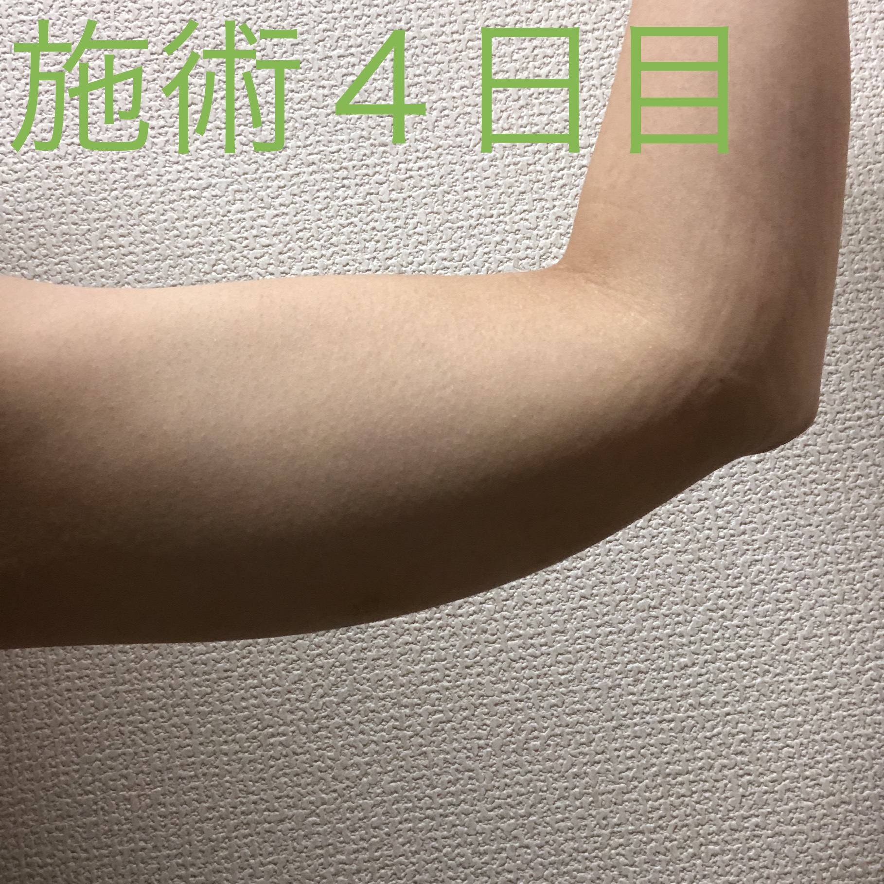 施術6日目:写真では腫れているように見えるが、実際4日目よりも腫れが治まっている。この辺りではほぼ青あざも目立たないので半袖も着れる。