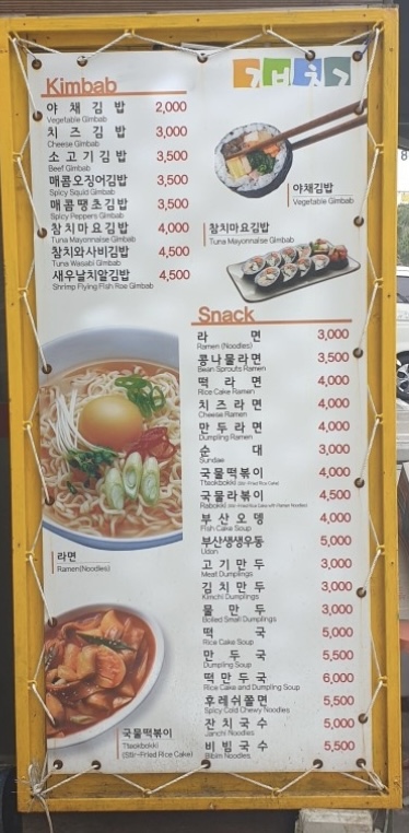 キンパがメインですが、麺類やスープなど、韓国らしいメニューが揃っています。